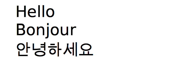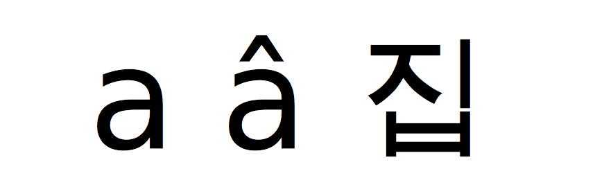 A basic Latin Small ‘a’, a circumflex accented french ‘a’, and a Korean syllable (meaning house)