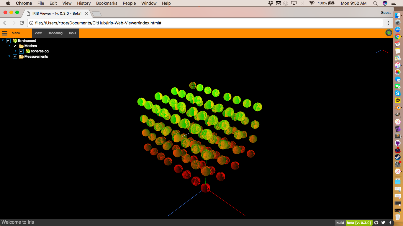 Every 3D application will have user interaction to some degree. But with the CPUs and GPUs these days, it’s easy to have 100’s or 1000’s of entities per scene, and if you want to do per-triangle selection, It’s very easy to quickly end up with 100 000s into the millions of triangles with in a scene. Take the Standford Dragon mesh as an example. Below is a version of it opened in Iris Viewer which holds 900 000 Vertices which make up 100 000 faces kept in a single mesh.