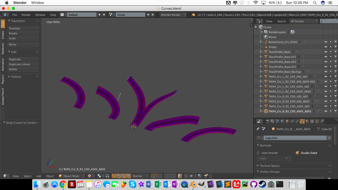 It became evident really quickly that this required a lot of modeling time and wasn’t the best course of action. The modeling was essentially performing the same actions again and again; Extrude a section across a curve in blender, rotating the end by a certain percentage for banking, and then apply a UV texture from there, and then repeat the process for each new set of track sections each time a new theme was added. Additionally, the physics mesh took a lot of fine tuning to get right so ships would stay on the track and not fly off or skip on section transition points. Each time there was a change, it required updating all of the models which shared that type.