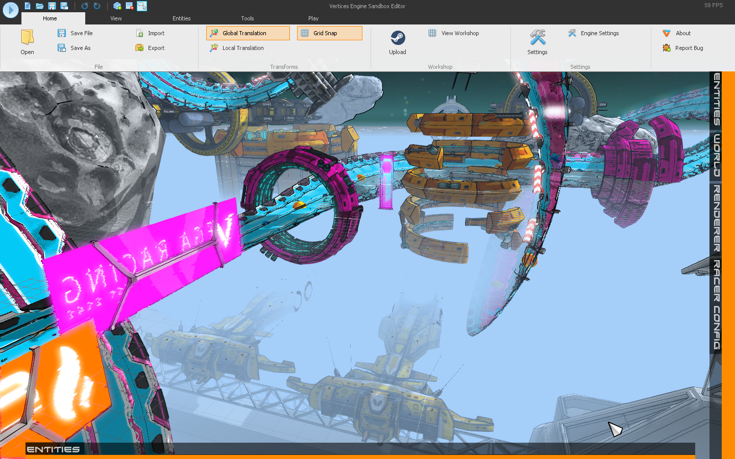 A New Region is taking shape in the Outer Colonies. The first track released is Juno City, the first settlement into the Frontier of the Sol system. This track combines portals, city racing and terrain navigation into a dynamic and engaging race. The new enviromental flying cars, volumetric fog and improvements to glass and skybox shaders all add a new layer of detail and life to the tracks. Check out the first look here: